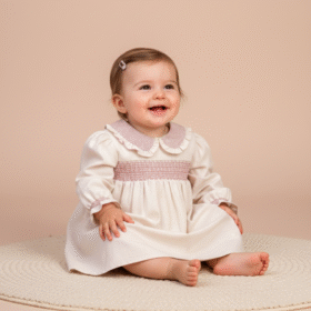 Robe Smockée Rose Poudré pour Bébé Fille – Élégance et Confort