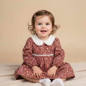 Robe Fleurie Rouge Brique pour Bébé Fille – Style Champêtre et Confort