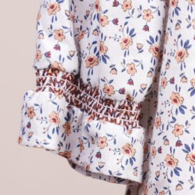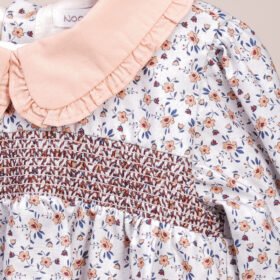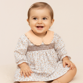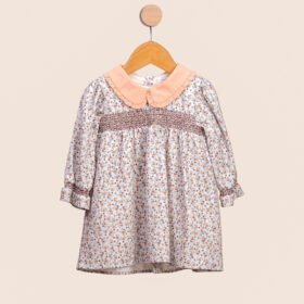 Robe bébé fille – Imprimé fleuri & col contrasté pêche