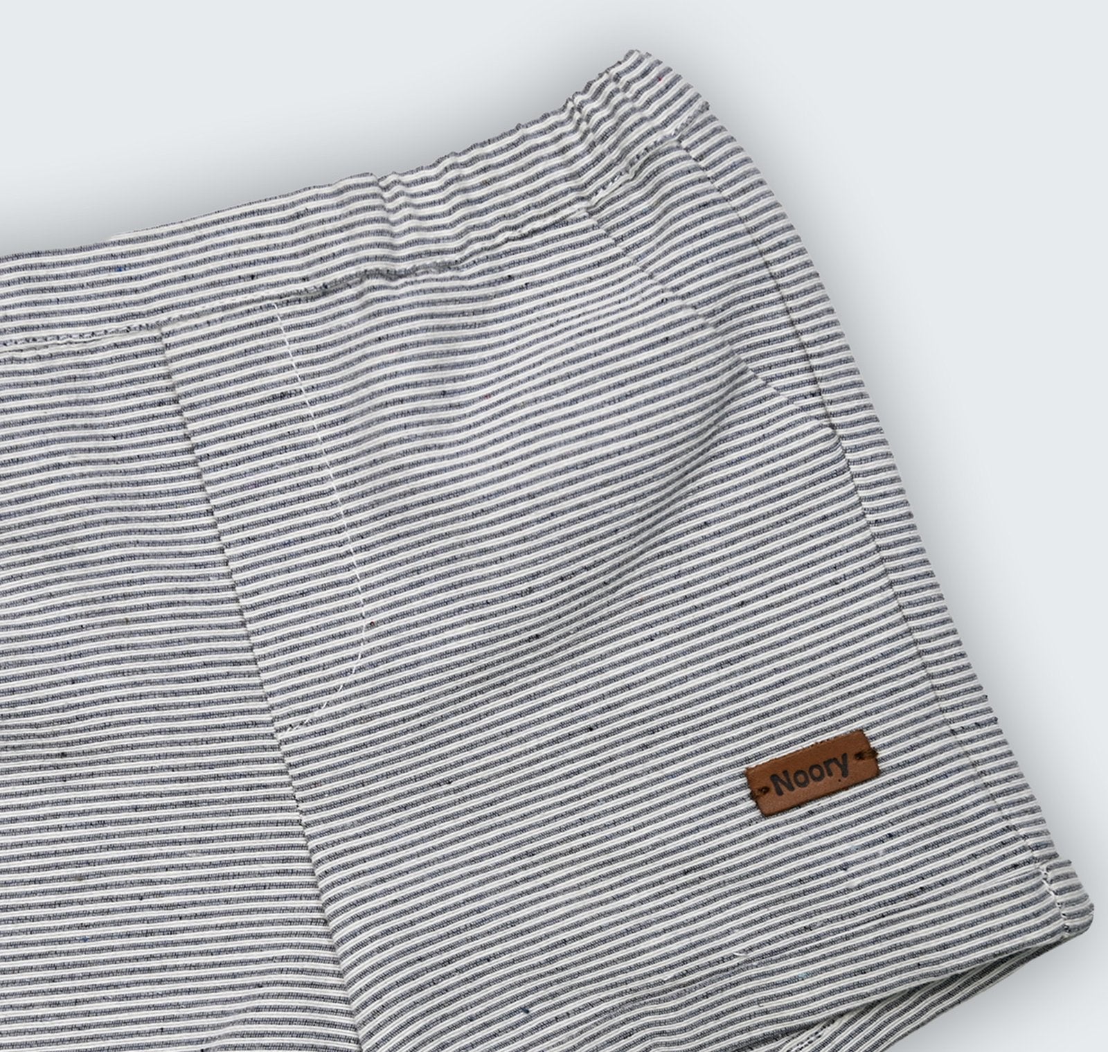 Short à rayures, 100% coton avec ceinture élastique réglable