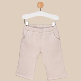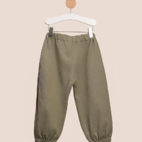 Pantalon en sarga 100% coton à ceinture élastiquée ornée d’œillets et cordon