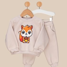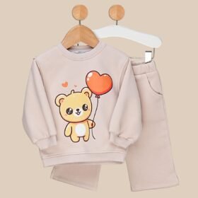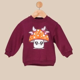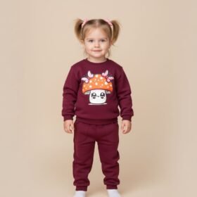 Ensemble Bébé Fille – Sweat & Pantalon Bordeaux (Motif Champignon Kawaii)